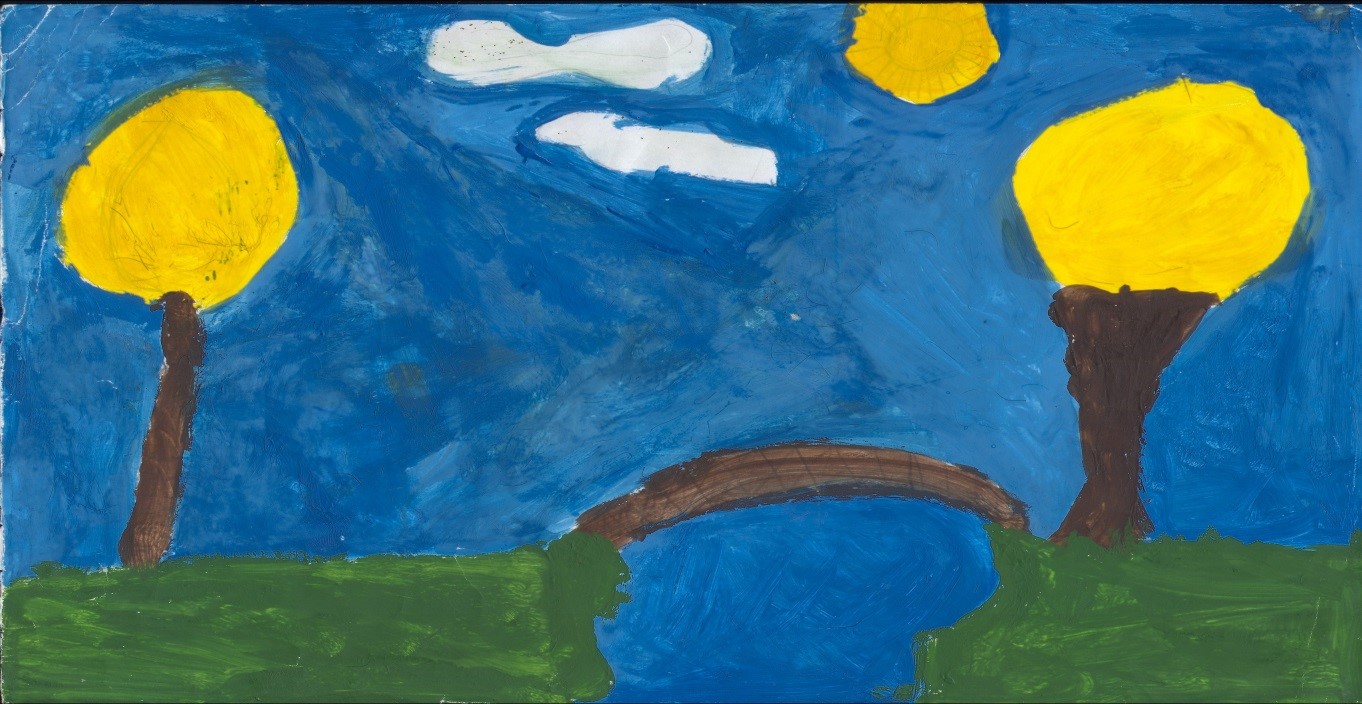 The work of 1 st grade student "Landscape. Bridge"