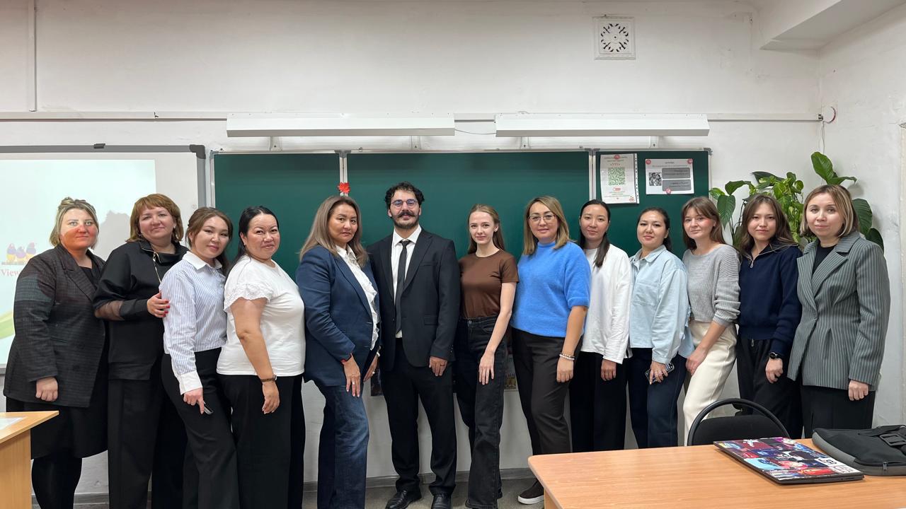Aliya Saduovna Zholdabayeva, head of the "Foreign Language: Two Foreign Languages" program at Margulan University, and Mustafa Rejep Insar Asar, a Turkish teacher from Turkey who is working on the "Foreign Language: Two Foreign Languages" program this academic year as a teacher of Turkish as a second foreign language for students of the Foreign Languages program.