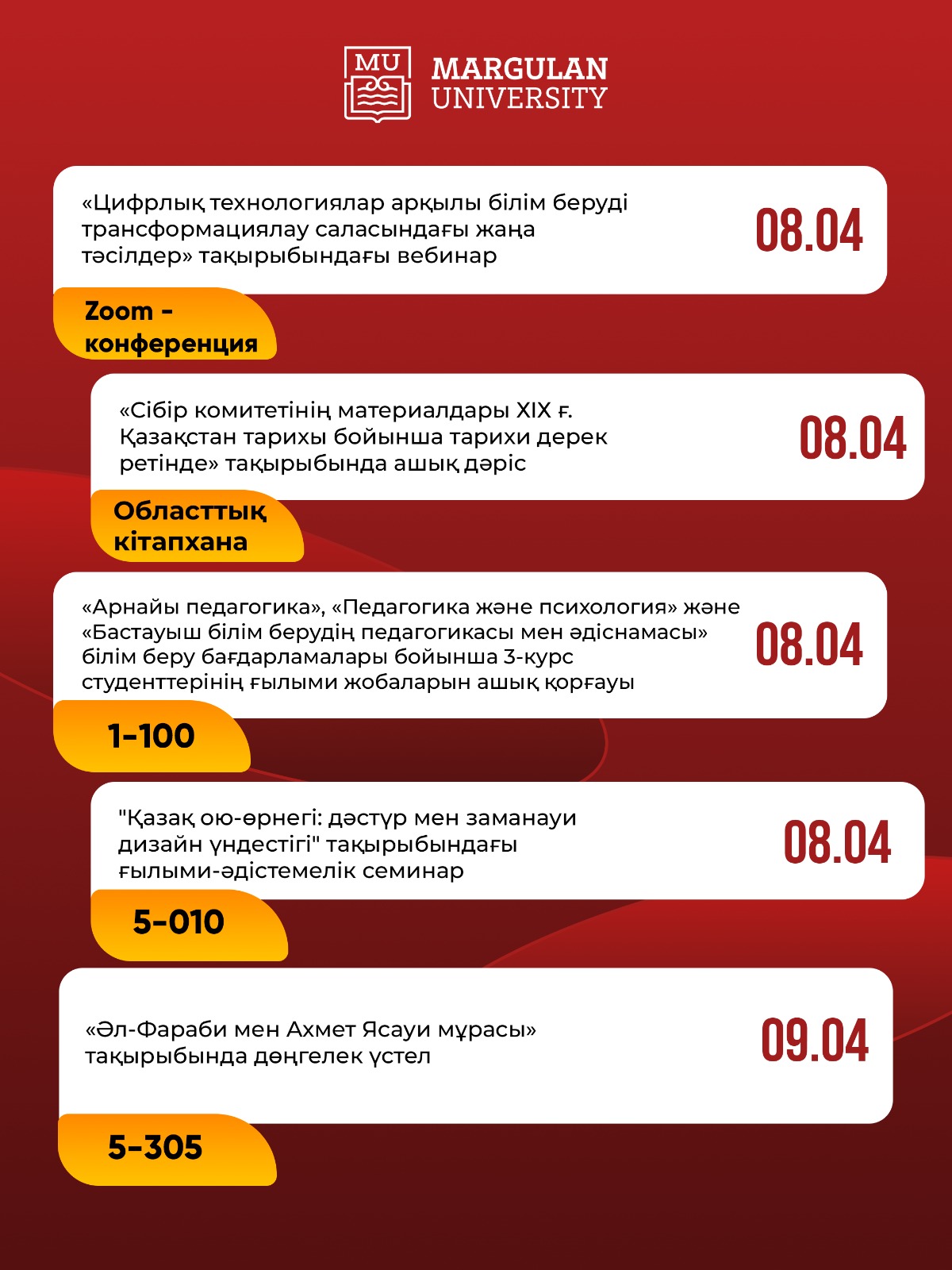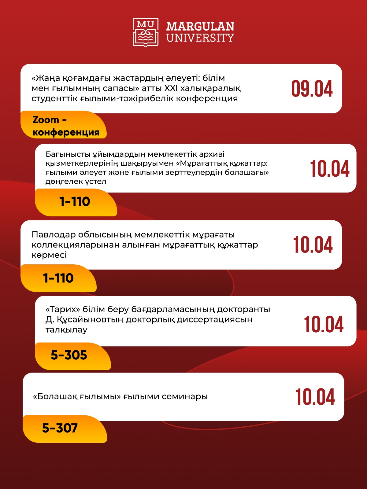 ӘЛКЕЙ МАРҒҰЛАН АТЫНДАҒЫ ПАВЛОДАР ПЕДАГОГИКАЛЫҚ УНИВЕРСИТЕТІНДЕ 2026 ЖЫЛДЫҢ 7-17 СӘУІРІ АРАЛЫҒЫНДА ҒЫЛЫМ ОНКҮНДІГІ ӨТЕДІ.