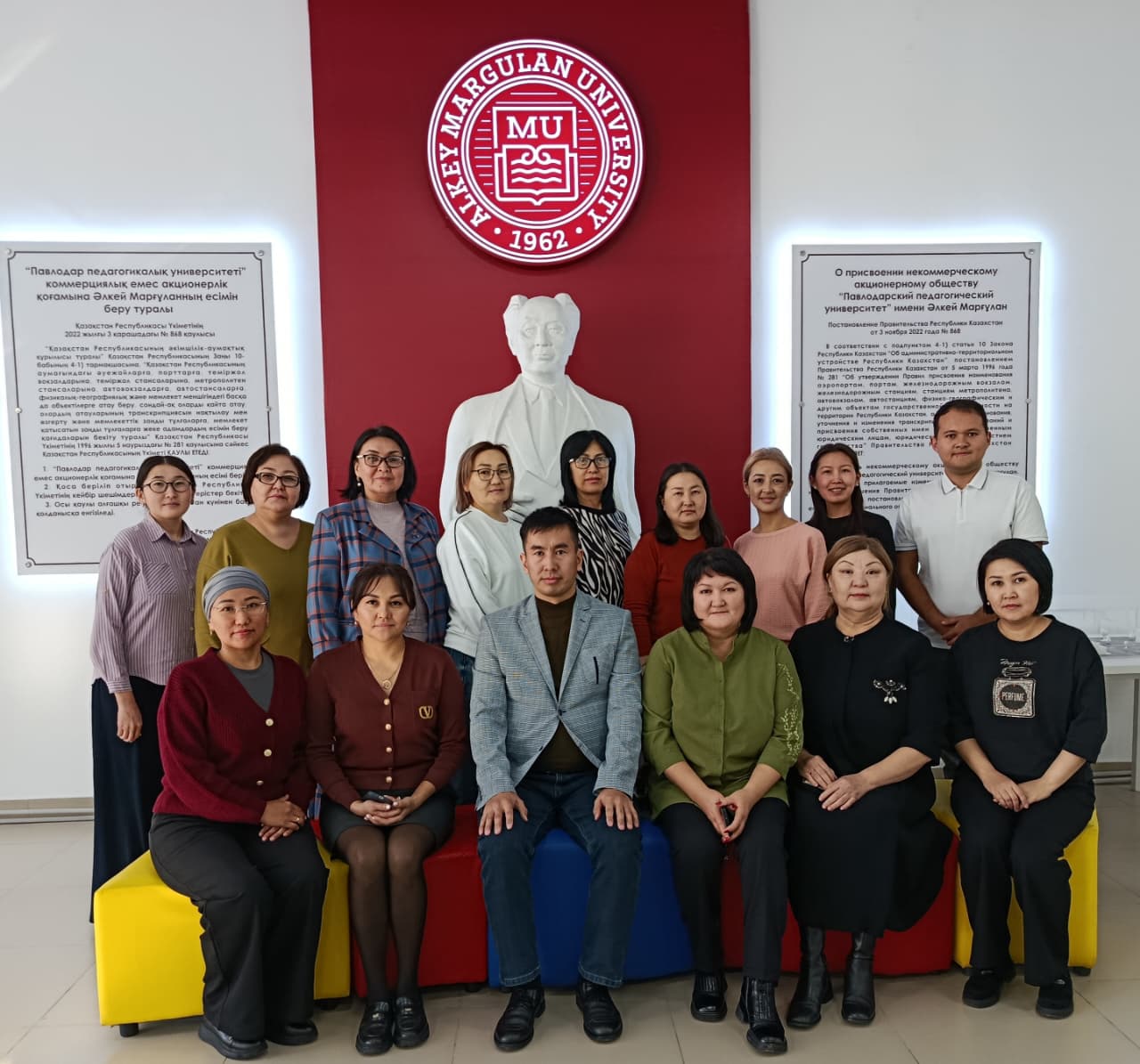 Марғұлан университетінің қызметкерлері мен оқытушыларын «Мемлекеттік тілде іс қағаздарын жүргізу» атты біліктілікті арттырудың кезекті курсының сәтті аяқталуымен құттықтаймыз! Кәсіби қызметте одан әрі табыс, алған білімін сенімді қолдану және мемлекеттік тілде іс жүргізу мәдениетін белсенді ілгерілетуді тілейміз!
