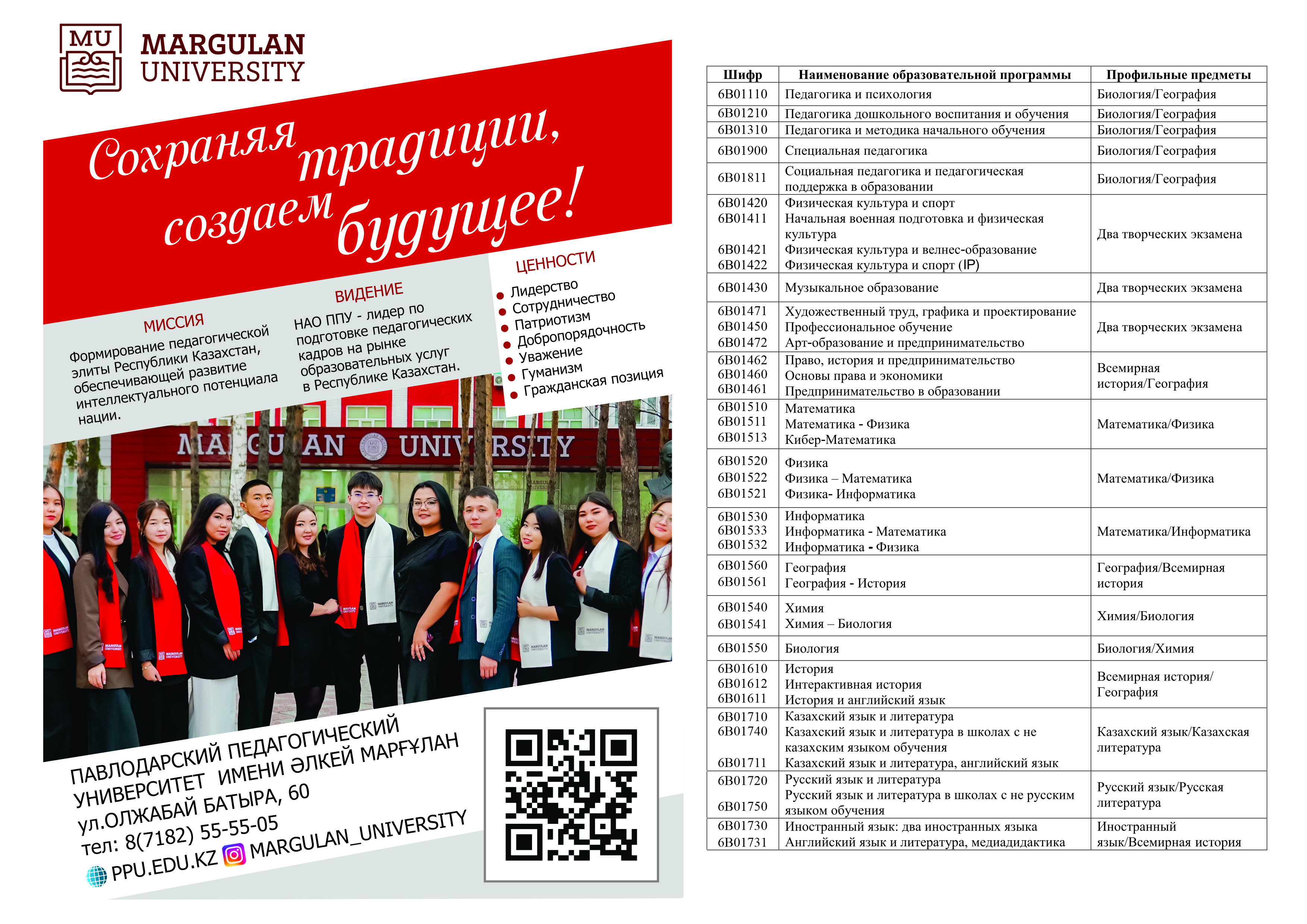Шарбақты ауданында ББ жетекшісі, профессор Алпысбай Н.А. және профессор Ахметов.А.С. «Құқық тарих, және кәсіпкерлік» инновациялық білім бағдарламасын таныстырып мұғалім мамандығын таңдаудың, педагог статусының деңгейінің артықшылықтарын түсіндірді. Оқушыларды білім бағдарламасының үш бағытты қамтитындығы, және оқытушы мен студенттердің белсенді ғылыми жұмыс жүргізуі қызықтырды.