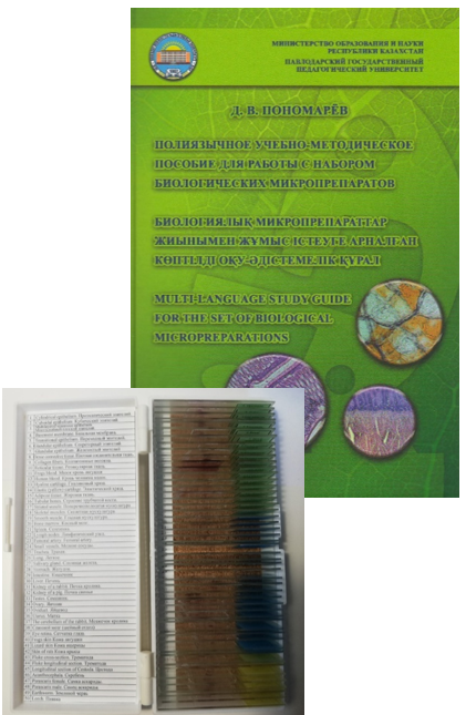 Автор трёхъязычное учебно-методическое пособие для работы с микропрепаратами «Полиязычное учебно-методическое пособие для работы с набором биологических материалов» - Д.В. Пономорев.