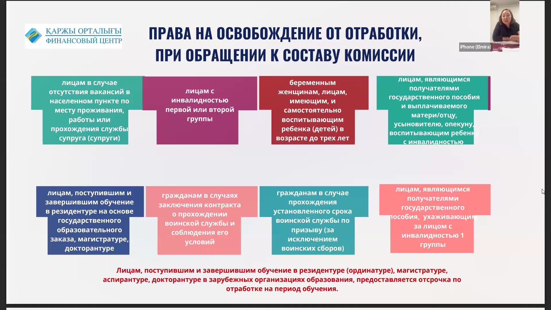 В ходе Zoom-сессии участникам была подробно разъяснена процедура отработки, сроки исполнения обязательств, а также даны ответы на актуальные вопросы выпускников. Особое внимание было уделено правовым аспектам и возможным вариантам выполнения обязательств.