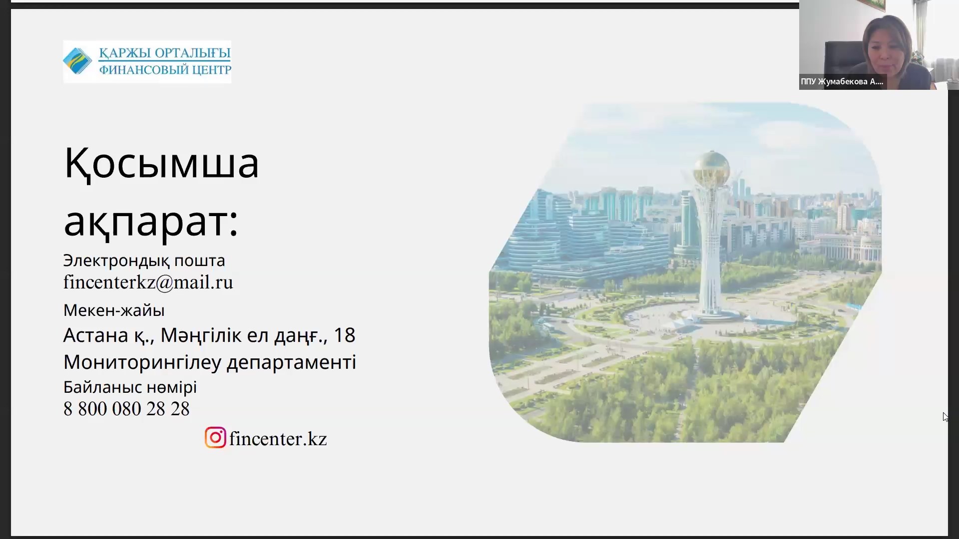 ПРОШЛА ОНЛАЙН ВСТРЕЧА С АО "ФИНАНСОВЫЙ ЦЕНТР"