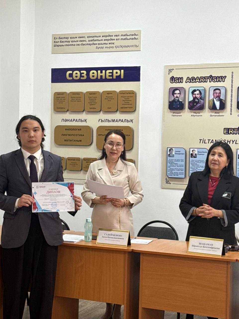 По итогам работы секции участникам были присуждены дипломы I, II и III степени, а также специальные номинации: «Наследник Маргулана», «Креативный научный подход», «Знаток краеведения», «Последователь Бекмаханова», «Мастер исторического анализа и критического мышления», «Лучший мастер storytelling», «Специалист межкультурной коммуникации», «Обладатель global mindset», «Научный дебют», «Лучший метод преподавания языка с использованием искусственного интеллекта» и другие.