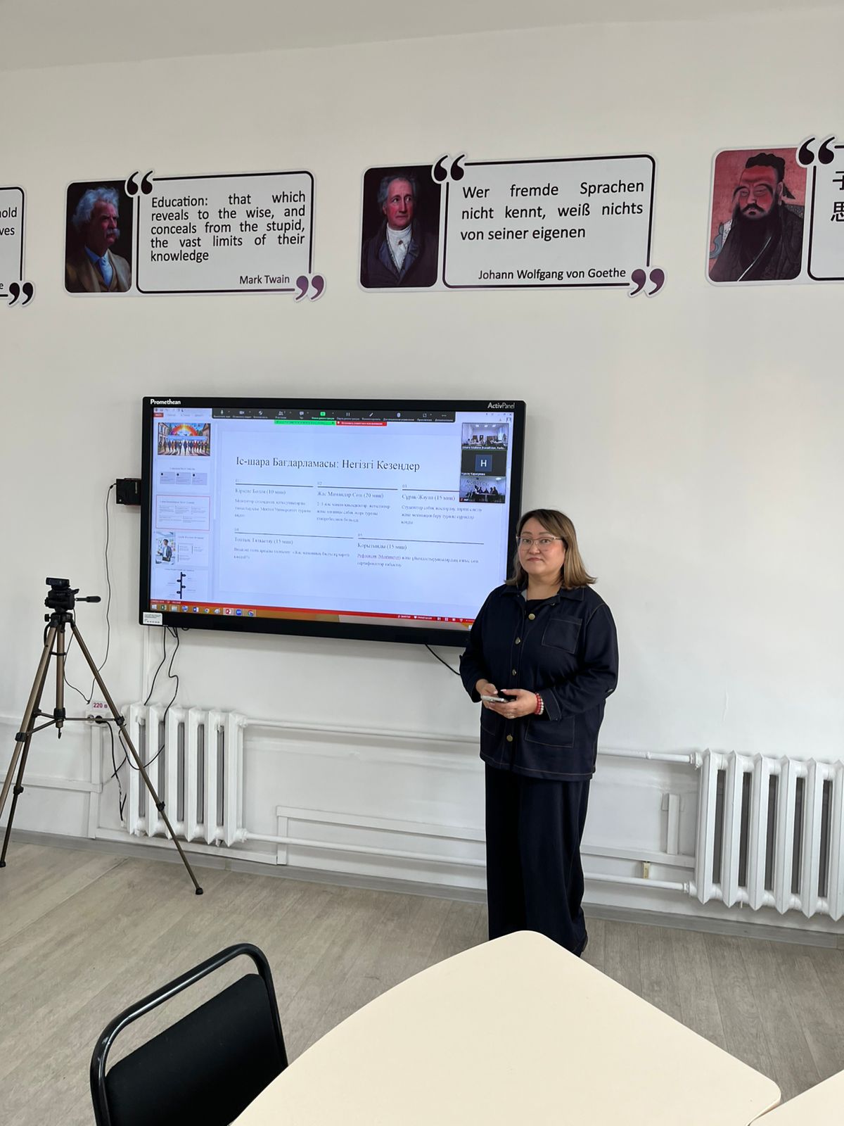 Мероприятие было организовано совместно с руководителем проекта «Тәлім time», педагогом-исследователем школы № 30 г. Актау Нурслу Каракуловой, руководителем образовательной программы «Иностранный язык: два иностранных языка» Марғұлан университета Алией Жолдабаевой и педагогом-исследователем гимназии №3 Динарой Искаковой.