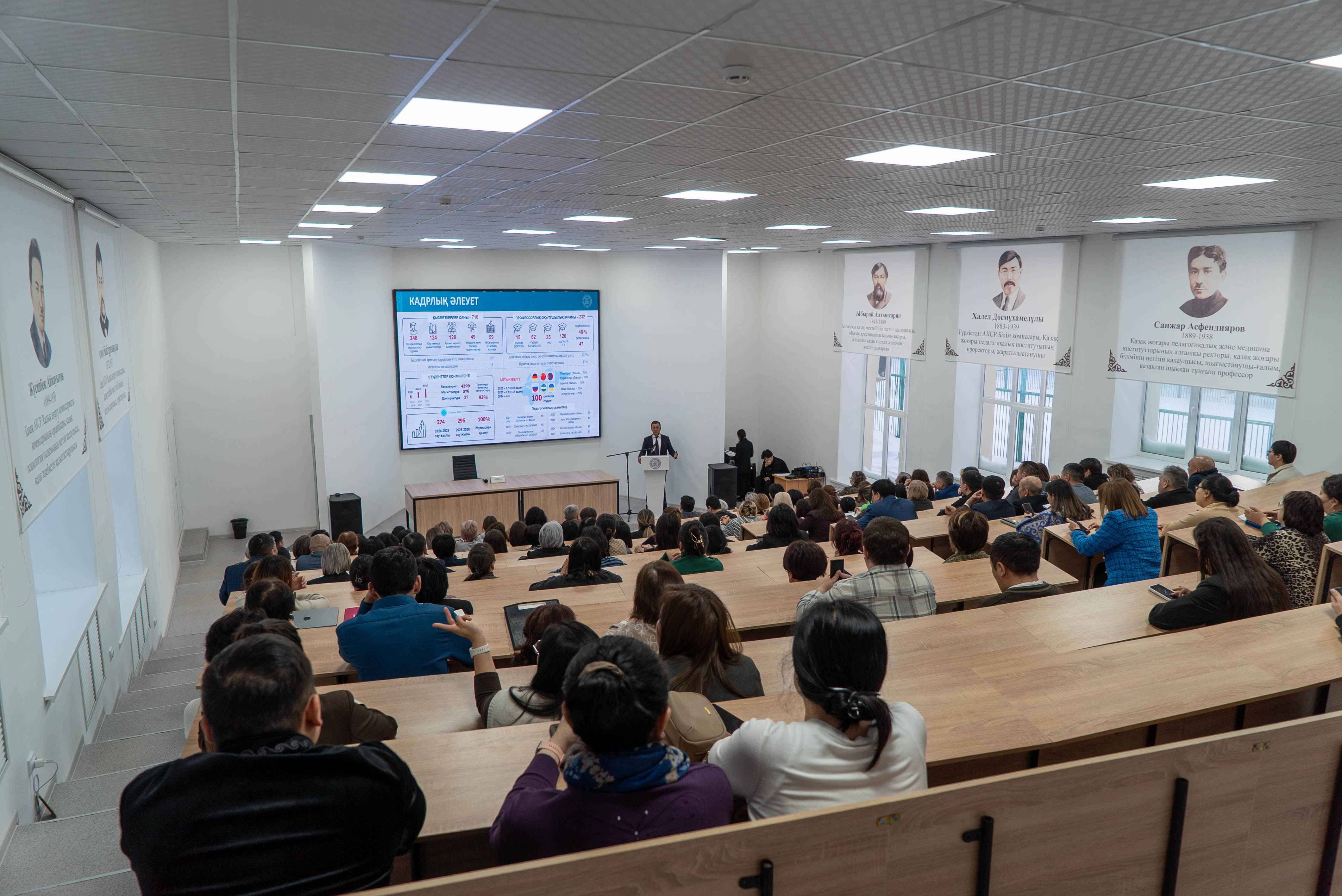 В ходе встречи ректор подробно остановился на ключевых направлениях работы, выполненных в течение учебного года: модернизации учебного процесса, повышении научно-исследовательского потенциала, расширении международного сотрудничества, укреплении качества образования и развитии университетской инфраструктуры. Также были представлены результаты по открытию новых образовательных программ, достижениям студентов, показателям академической мобильности, цифровизации и мерам социальной поддержки.