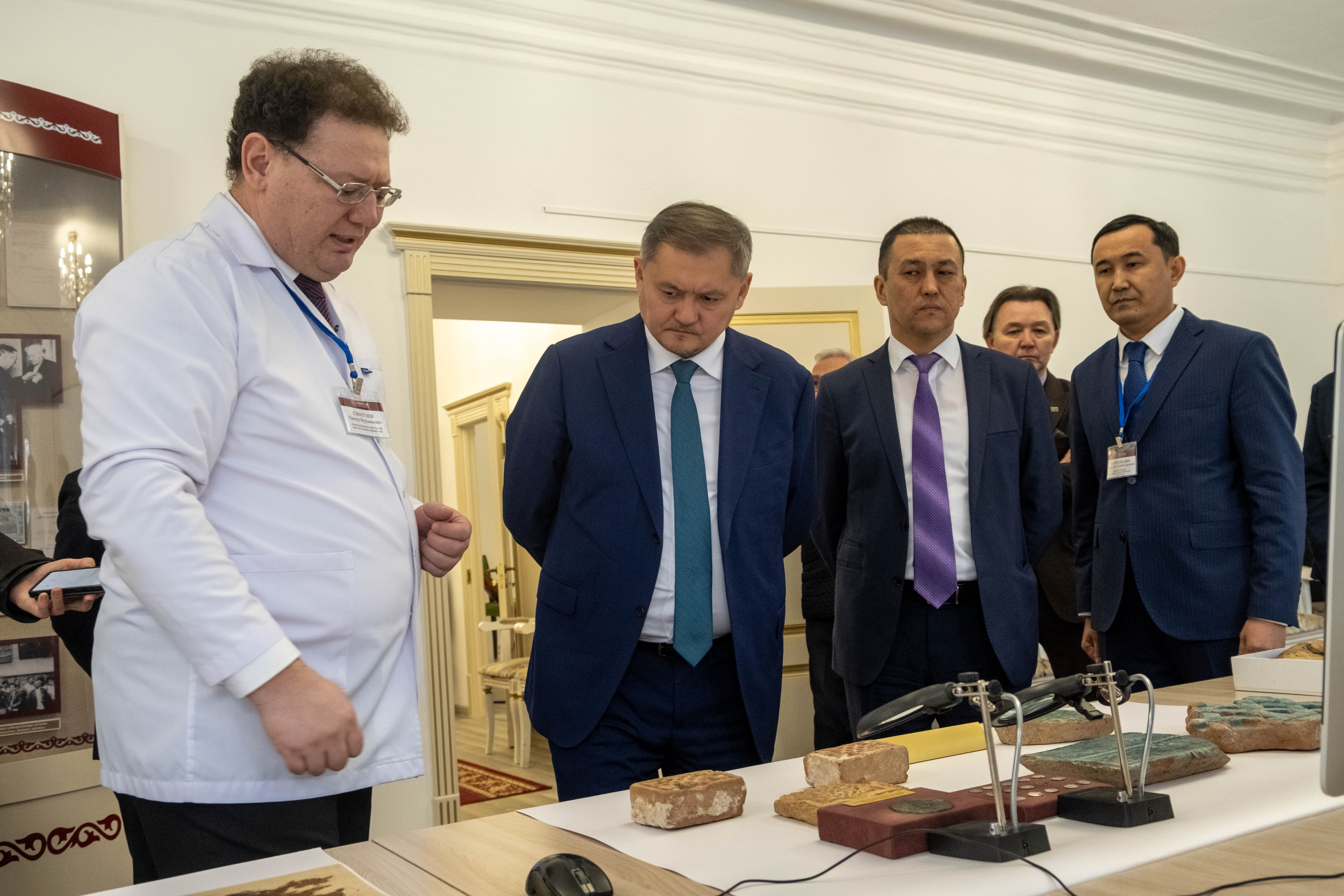 Кездесу барысында институт директоры Тимур Смагулов министрге негізгі ғылыми жобалар мен зерттеу бағыттарын таныстырып, жүргізіліп жатқан археологиялық зерттеулер мен қазбалар туралы айтып берді. Сонымен қатар, орталықтағы биоархеология, эксперименталды археология зертханасы, «UMAI» атты халықаралық мәдени мұраны сақтау зертханасы, сондай-ақ «Марғұлантану» оқу-музей кешені таныстырылды.