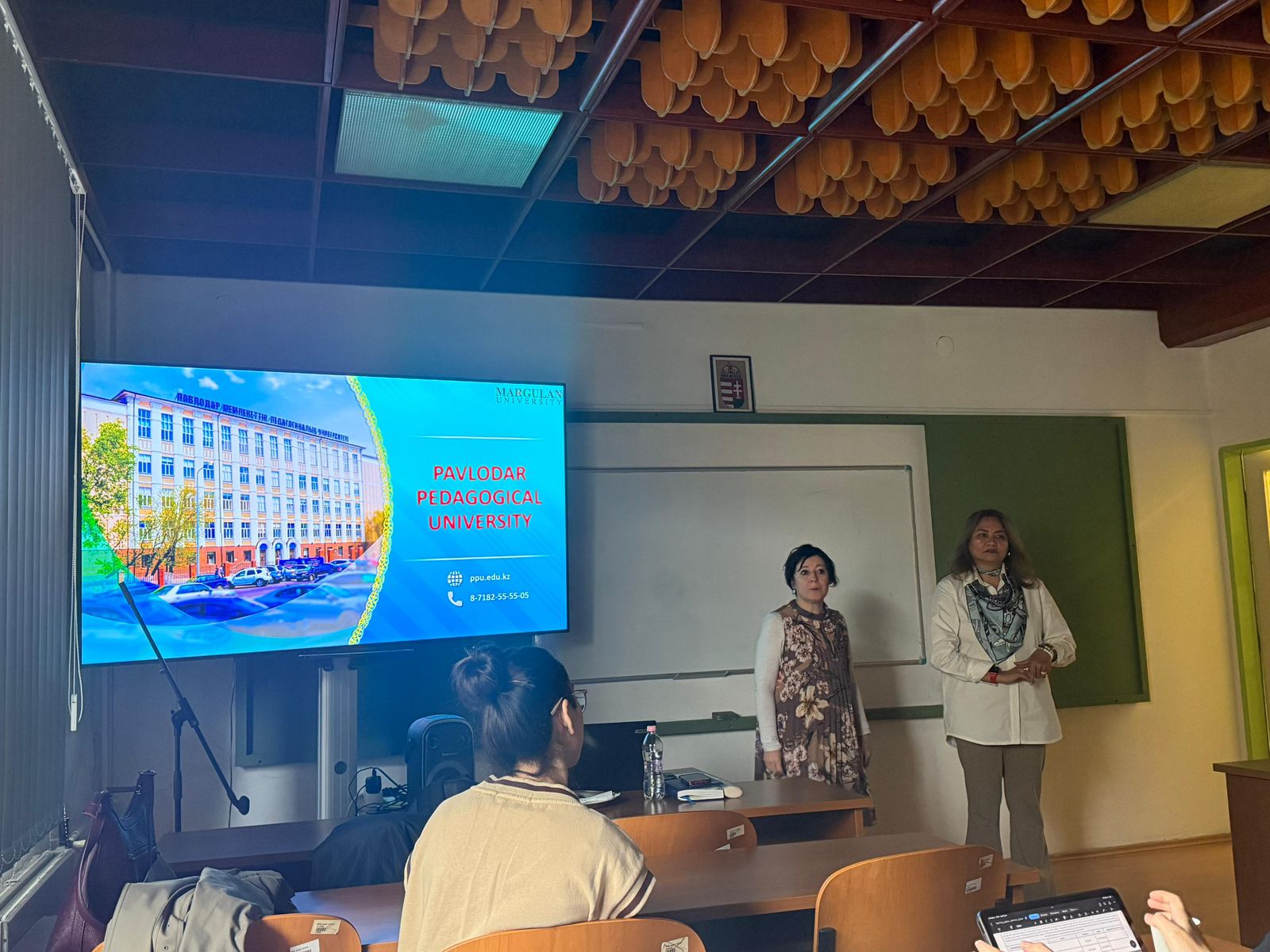 Алия Сәдуақасқызының Ә.Марғұлан атындағы Павлодар педагогикалық университеті мен «Шетел тілі: екі шетел тілі» білім беру бағдарламасы туралы жасаған таныстырылымы Шопрон университетінің профессорлық-оқытушылық құрамының және бакалавриат пен магистратура студенттерінің зор қызығушылығын тудырды.