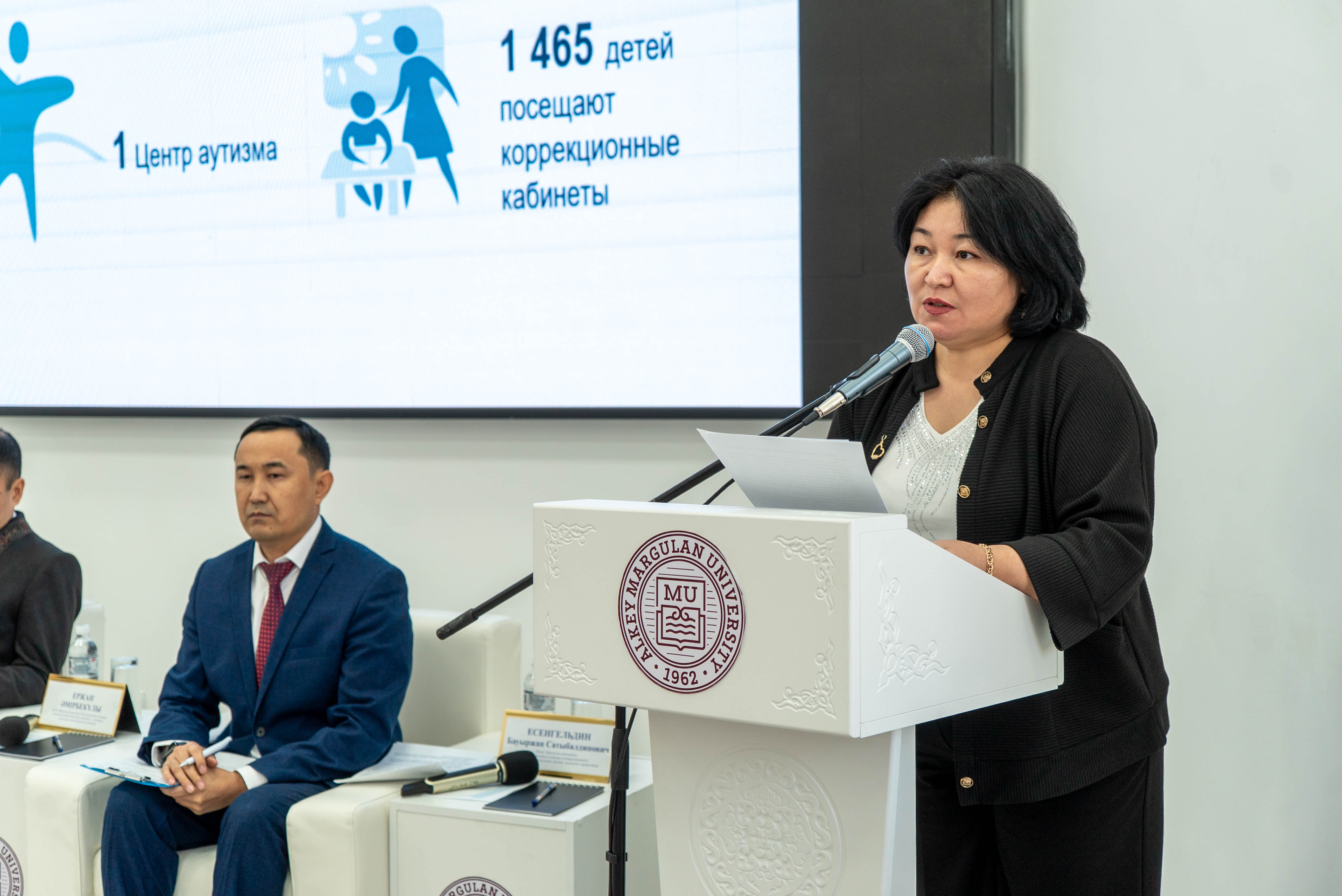 Павлодар облысының тәжірибесі негізінде инклюзивті білім беру үшін жағдай жасау бойынша жүргізіліп жатқан жүйелі жұмыстар туралы Павлодар облысы білім беру басқармасының балалардың құқықтарын қорғау және инклюзивті білім беру бөлімінің басшысы Айтмухамбетова Жібек Оразбаевна тоқталып өтті.