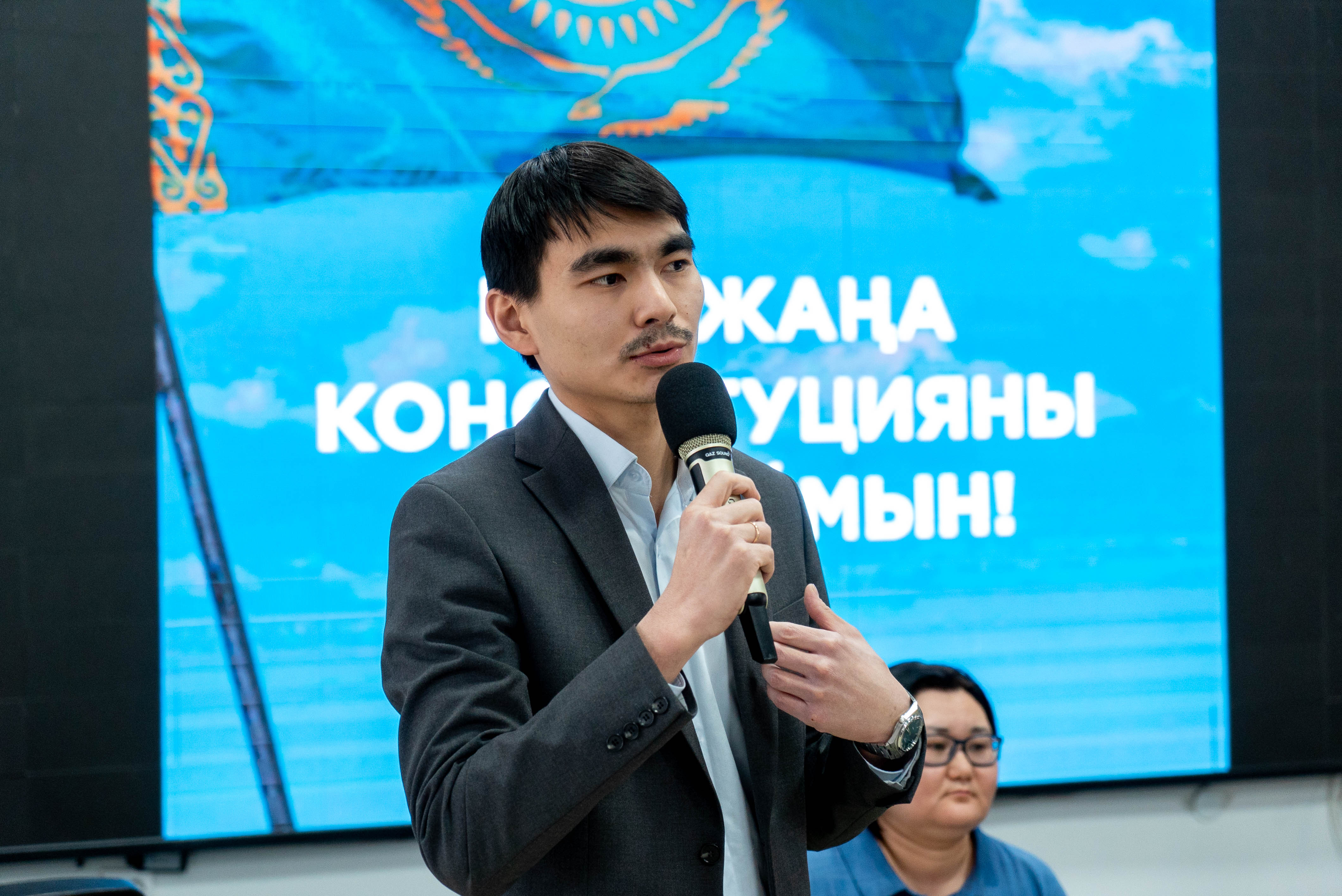 Мұрат Ксембаев жастардың азаматтық белсенділігінің маңыздылығына тоқталып, студенттерді Жаңа Қазақстан үшін саналы таңдау жасап, референдумға қатысуға шақырды.