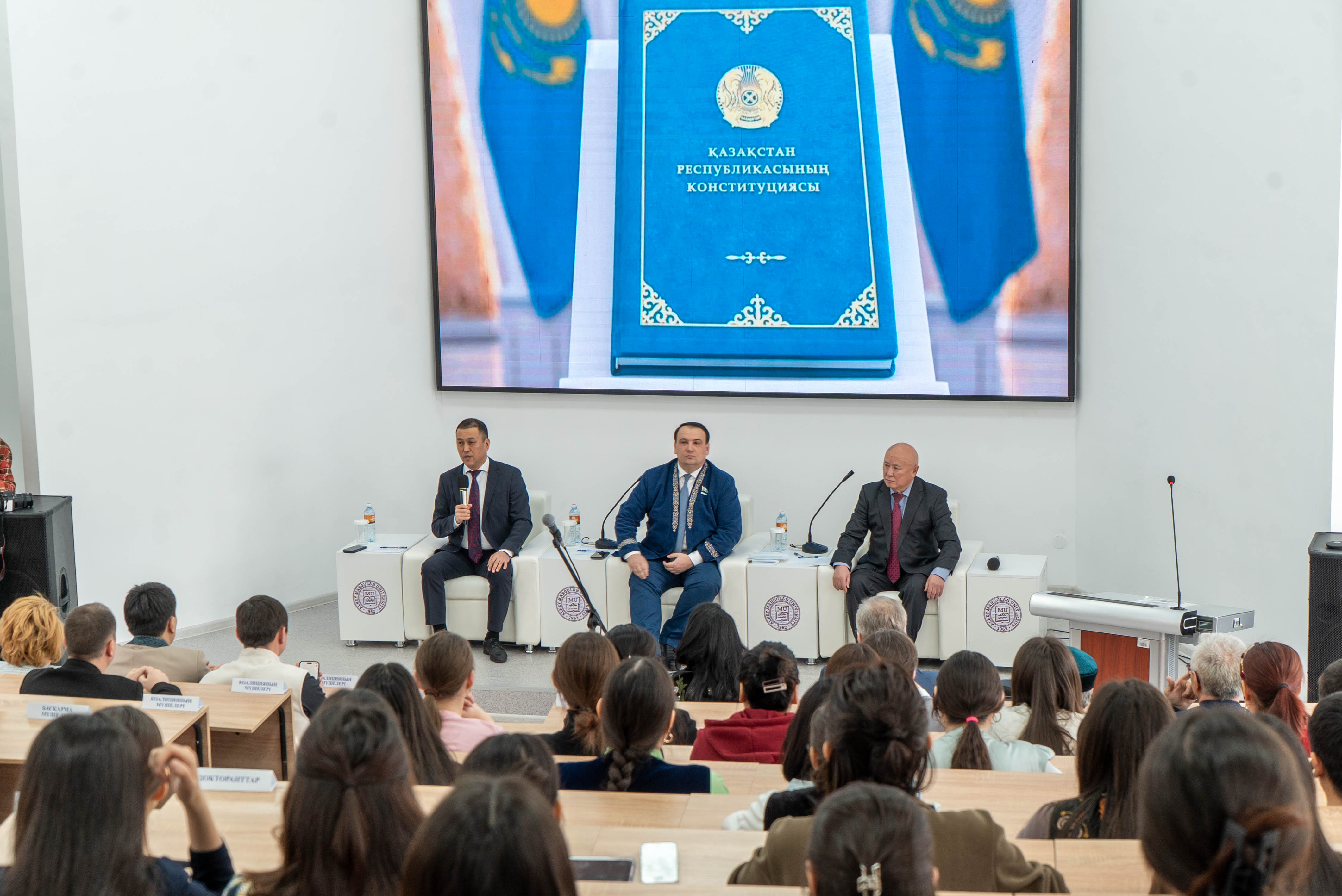 Кездесу алаңына депутаттар, мемлекеттік органдардың өкілдері, қоғамдық ұйымдар, сарапшылар мен жастар жиналды. Отырысты университет ректоры Ержан Әмірбекұлы модерациялады.
