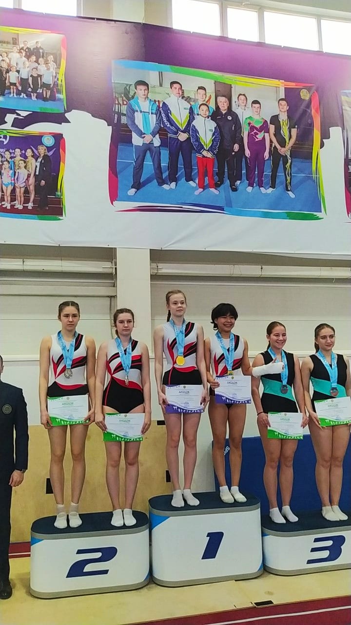 Өнер және спорт жоғары мектебінің ДШжС-12 тобының студенті Виктория Бутолина жарыстың абсолютті чемпионы атанды! Ол жеке біріншілікте де, командалық жарыста да бірінші орынды жеңіп алды. Синхронды баттутта секіруден ДШжС-32 тобының студенті Алина Сарсембаева жарыс чемпионы атанды. Жекелей батутта секіруде Алина - қола жүлдеге ие болды.