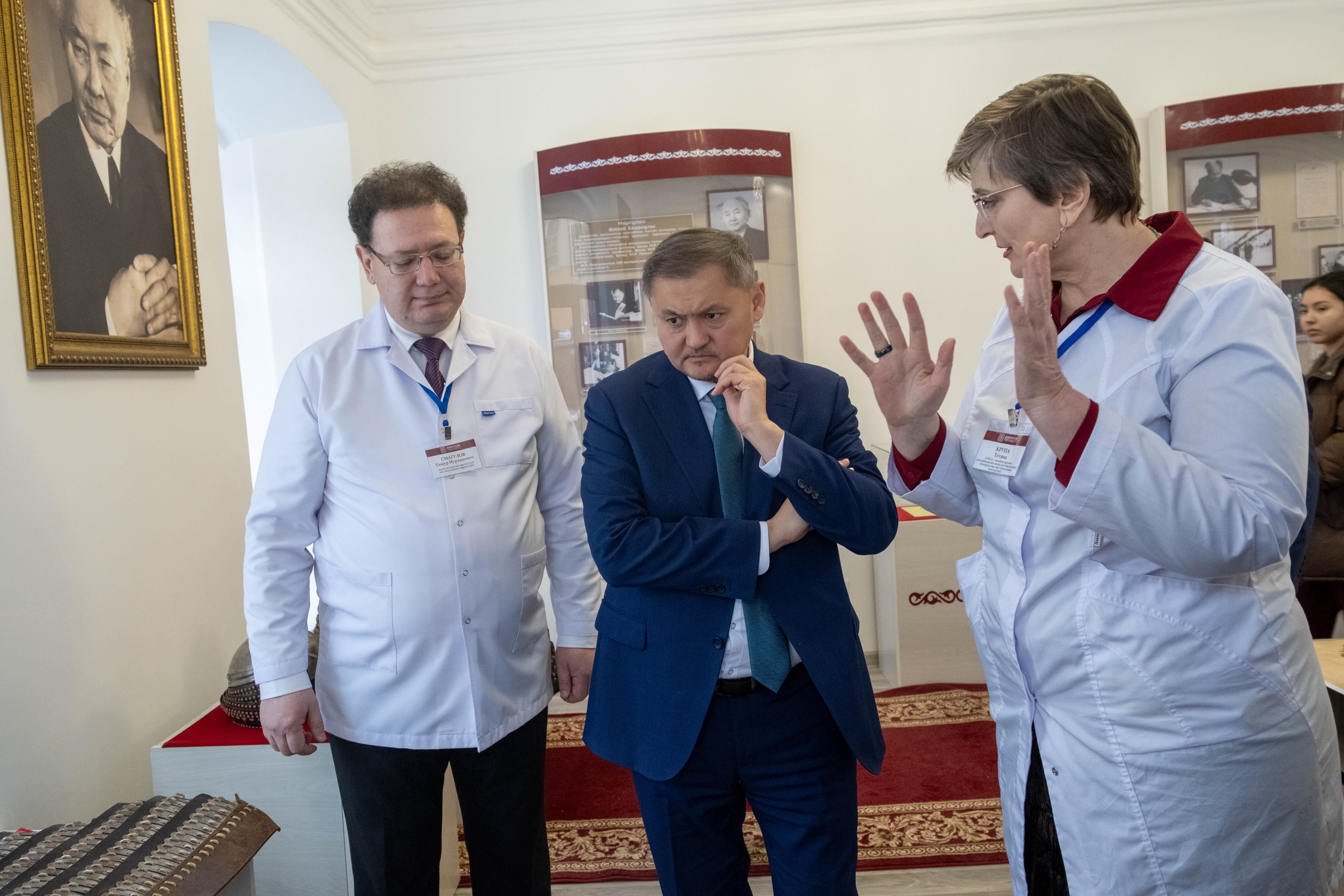 Кездесу барысында институт директоры Тимур Смагулов министрге негізгі ғылыми жобалар мен зерттеу бағыттарын таныстырып, жүргізіліп жатқан археологиялық зерттеулер мен қазбалар туралы айтып берді. Сонымен қатар, орталықтағы биоархеология, эксперименталды археология зертханасы, «UMAI» атты халықаралық мәдени мұраны сақтау зертханасы, сондай-ақ «Марғұлантану» оқу-музей кешені таныстырылды.