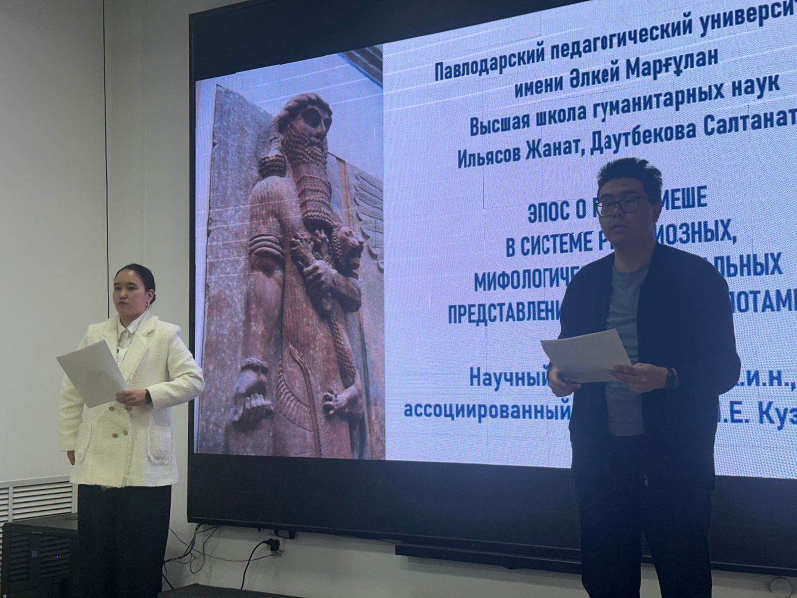 Баяндаманың тақырыбы — «Ежелгі Месопотамияның діни, мифологиялық және әлеуметтік жүйесіндегі Гильгамеш туралы эпос». Онда ежелгі өркениеттер мен олардың мәдени мұрасын зерттеудің өзекті мәселелері қарастырылды.