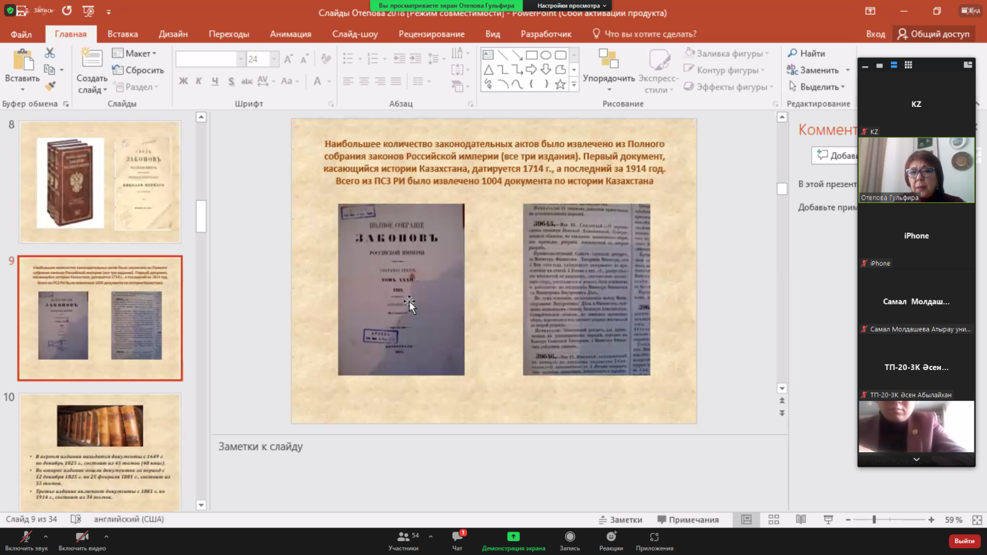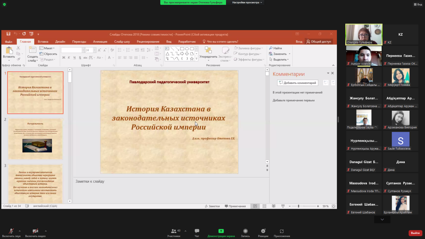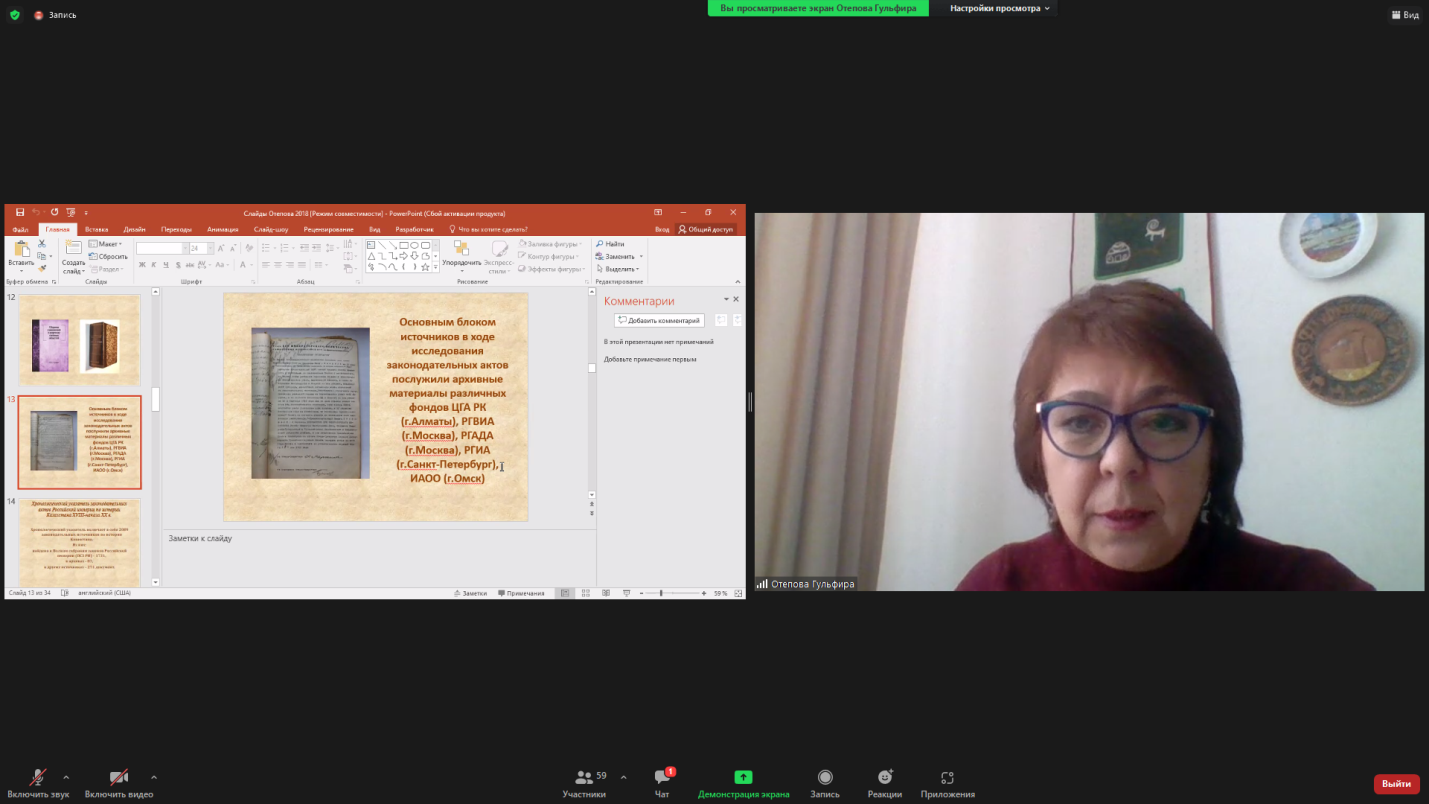 2022 жылдың ақпан айында «Тарих» білім беру бағдарламасының профессоры, тарих ғылымдарының докторы Г. Өтепова «Тарих және археология ғылымындағы жаңа зерттеулер мен бағыттар» Халықаралық қысқы тарихи-археологиялық мектеп жұмысы аясында (14-27 ақпан) «Ресей империясының заңнамалық деректеріндегі Қазақстан тарихы» тақырыбында дәрістер курсын оқыды.