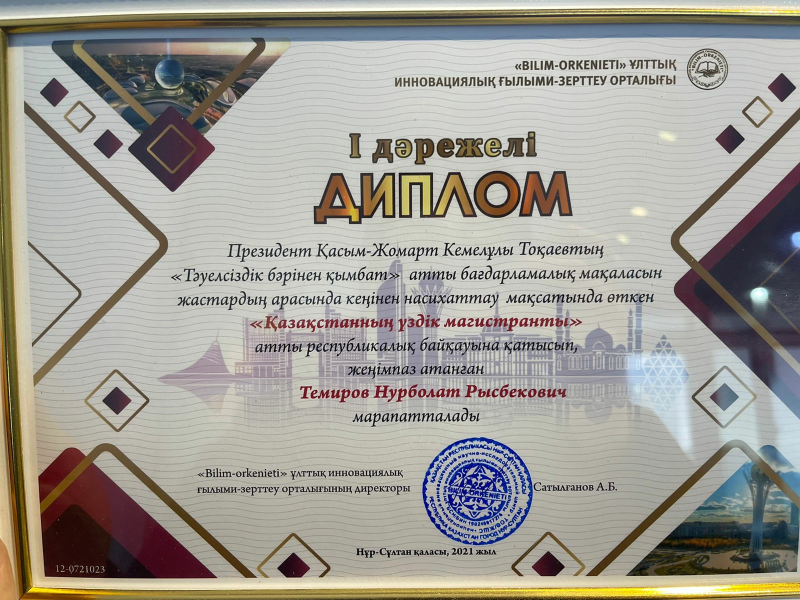 «Bilim-orkenieti» ұлттық инновациялық ғылыми-зерттеу орталығымен ұйымдастыруымен Президент Қасым-Жомарт Кемелұлы Тоқаевтың “Тәуелсіздік бәрінен қымбат” бағдарламалық мақаласын қоғамға кеңінен насихаттау мақсатында республикалық байқау өтті. Байқауда тарих білім беру бағдарламасының 2-курс магистранты Нұрболат Темиров “Қазақстанның үздік магистранты” атанды.